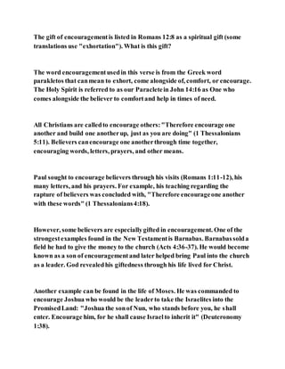 Web The Christian who exhorts is spiritually gifted with that unique ability to help folks move forward in their relationship with Jesus. Web The gift of encouragement or exhortation is found in Pauls list of gifts in Romans 1278. The spiritual gift of exhortation is given to believers to encourage and build up other believers.